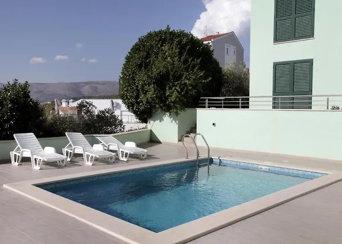 海滨的Apartments Verde 特罗吉尔距离Beach Vela Draga有5分钟车程,为想要做饭的客人提供设施齐全的厨房. 驾车15分钟就可以到斯普利特机场,公寓距离Skola II公交车站100米.